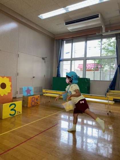 点数を書いてある的をめがけてボールを投げる…目標をもって楽しく遊ぶことが、投げる力につながります。