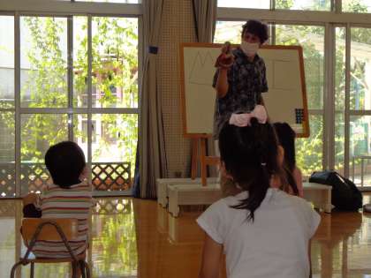 マット先生は、いつも、英語のみでお話されますが、子どもたちはちゃんと理解して、楽しみながら英語を学んでいました。