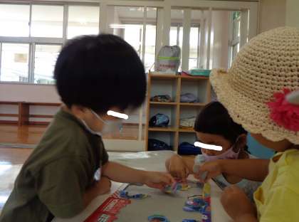 ひよこランドさん 公開日 2022/09/08 更新日 2022/09/08 新規カテゴリ 9月に入ってから、2回目のひよこランドさんでした。 友達と関わる姿が見られるようになってきました。 砂場で大きなお山をつくったり、園児と一緒に体操をしたりしましたよ。 ひよこランドさんが入室するときに、年長児そら組さんが、ジッと見守ってくれていました。 いいね(0)