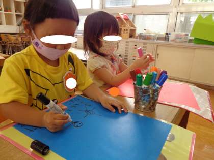 今日のひよこランドさん 公開日 2022/09/22 更新日 2022/09/22 新規カテゴリ ひよこランドさんは、幼稚園のお友達のように、運動会の旗に絵をかきました。 みんな真剣です。早速、廊下に飾ってもらって、お迎えに来られたお家の人に、嬉しそうに見てもらっていました。 いいね(0)