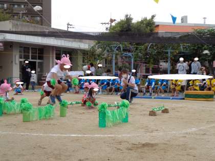 20っぴきのカエルのきょうだい(4歳児さくら組) 公開日 2022/10/08 更新日 2022/10/08 新規カテゴリ 野里池に20っぴきのオタマジャクシが生まれ、立派なカエルになって、カエルランドで遊びました。 カエルランドのトゲトゲ草を跳び越えたり、ジャンプしてお花にタッチしたり、ぴょんぴょこ岩やカエル岩から遠くへ跳んだりしました。 いいね(0)
