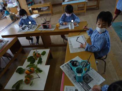 墨で柿の絵をかきました 公開日 2022/10/25 更新日 2022/10/25 新規カテゴリ 5歳児そら組さんは、幼稚園でなった柿を見ながら墨で絵をかきました。 目の前の柿をよく見てかいています。いい線が出ていますね。 いいね(0)