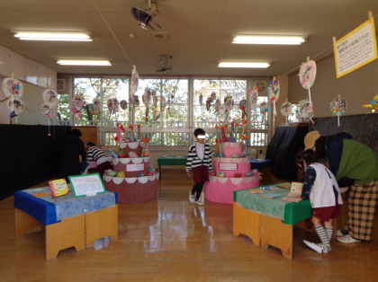 うちわ・手作り絵本(親子製作) 公開日 2022/11/18 更新日 2022/11/18 新規カテゴリ 運動会の応援グッズにした手づくりうちわや、絵本作家さいとうしのぶさんのワークショップでつくった手づくり絵本を展示しました。 どちらも、親子でつくったものです。お友達の作品を見て楽しみました。 いいね(0)