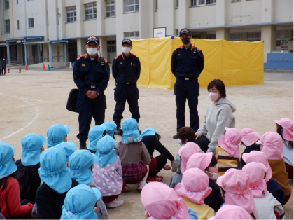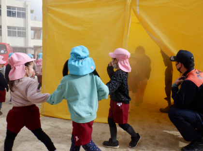 防災訓練 公開日 2023/01/18 更新日 2023/01/18 新規カテゴリ 歌島小学校の防災訓練で、煙テントの中を通り抜ける体験をしました。 消防士さんから、火事になったときにはこんな煙ではすまないこと、煙を吸うと倒れてしまうこともある、子どもだけで火を使わないことなど、大切なことを教えてもらいました。 いいね(0)