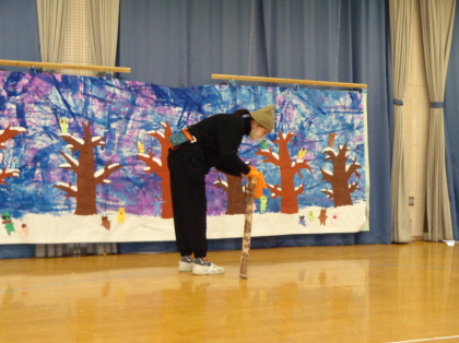 「てぶくろ」のお話の最後には、おじいさんが落とした手袋を拾いに来ました。よかったね。
