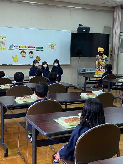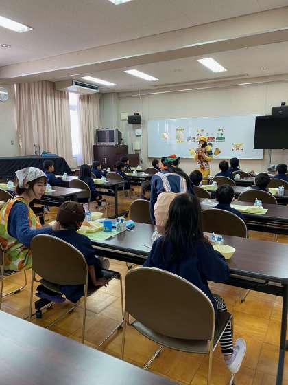 栄養教諭の先生が、給食のメニューに使われている食材とその働きを赤・青・黄に分けて教えてくださいました。