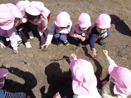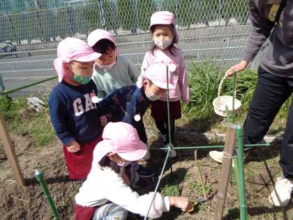 4歳児さくら組さんが、久しぶりに幼稚園の畑に行きました。