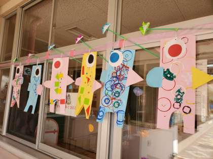こどもの日の集い 公開日 2023/05/03 更新日 2023/05/03 新規カテゴリ 5月2日(火) 「こどもの日の集い」の遊びをしました。テラスには子どもたちがつくった色とりどりのこいのぼりが並び、始まりを待っています。 いいね(0)