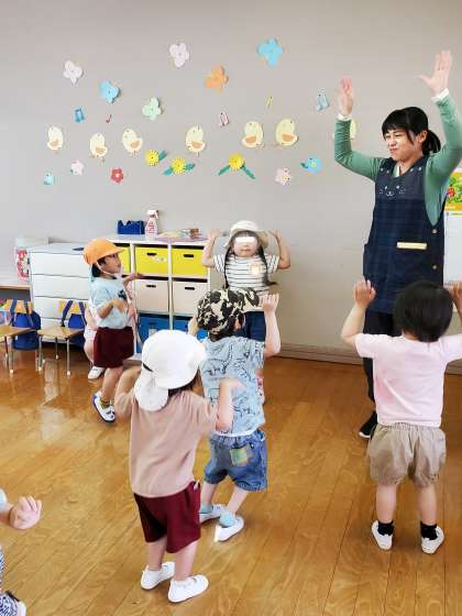 5月の連休明けから始まった3歳児対象未就園児活動のひよこランド。週3回の活動で、幼稚園での生活を存分に楽しんでいます。幼稚園のお兄さんお姉さんの遊びを一緒にしたり、指導員の先生と元気いっぱい体操したり、絵本を読んでもらったり…。帰りの時間には、もっと遊びたかったー!と思わず涙してしまう可愛い姿もみられます。これからもたくさん遊びましょうね!