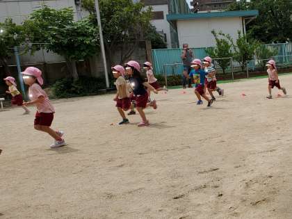 さくら組さんやひよこランドさん、参加してくれた保護者の方も園庭を元気いっぱい走りました。何度も走るうちに、段々走り方やスピードが変わってきましたよ。笑顔が溢れるとても楽しい時間となりました。