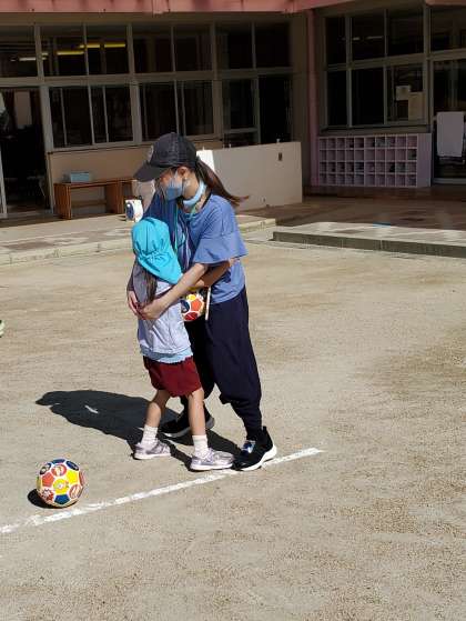 保護者の方と一緒に運動会の親子競技の練習をしました。障害物競走「のってくぐってはしって」では、フラフープをおうちの人にかけたり、ネットをくぐったり、ボールをお腹に挟んで落とさないように運んだりと色々な障害物を親子で協力して進みます。