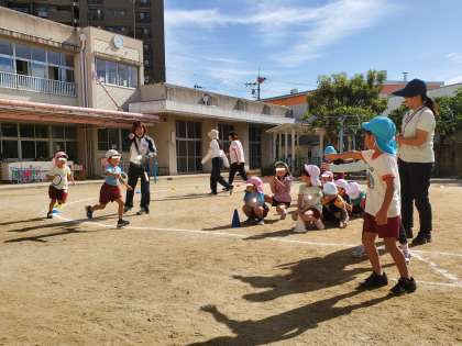 子どもたちは運動会の余韻を楽しんで過ごしています。引き続きチャレンジ遊びに挑戦したり、クラスを交えてリレーをしたりと運動会の楽しかった経験や充実感が、次の遊びの意欲につながっていきます。