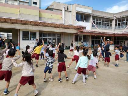 小さいお友達が幼稚園に遊びに来てくれました。涼しくなってきたので園庭遊びをゆっくりと楽しむことができました。最後は園児と一緒に「ジャンボリミッキー」を踊りました。