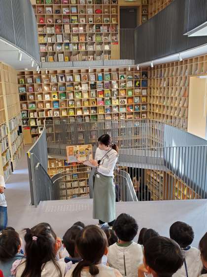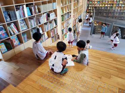 中之島にある図書館、こども本の森中之島に行きました。館内は天井まで本棚が広がっており、見ているだけでワクワクする空間に子どもたちも圧倒されているようでした。お話の会では、図書館の方にハロウィンにちなんだおばけの絵本を読み聞かせしていただきました。その後は館内を自由に行動し、自分たちで気になる絵本や図鑑を探したり、珍しい本にふれたりと素敵な時間を過ごすことができました。