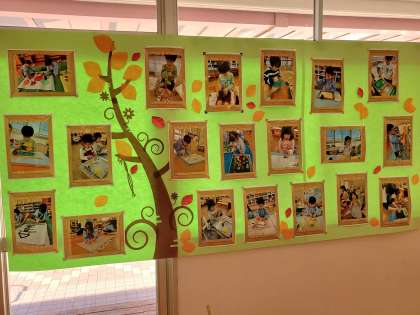 野里幼稚園のてんらんかいを行いました。子どもたちの絵画や色々な作品をおうちの方に見ていただきました。自分の作品の工夫したところをお話したり、お友達の作品にも興味をもって見たりしていました。おうちの人に頑張りを認めてもらって、嬉しそうな姿がたくさんみられました。