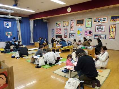 親子製作では日めくりカレンダーに飾りつけをしました。後日、持ち帰りますので、おうちに飾ってくださいね。新しい年を迎えるのが楽しみですね!