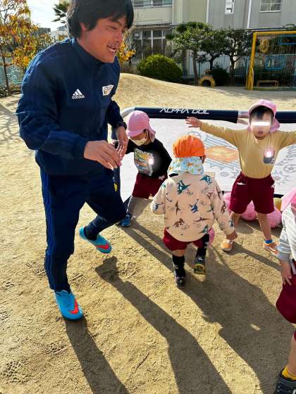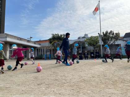 今年度2回目のサッカー体験がありました。前回(6月)の活動からサッカー遊びへの意欲が高まり、好きな遊びの時間にもよくサッカーをしている子どもたち。サッカー協会の方からサッカーボールとゴールを寄贈していただいたことで、更に盛り上がっています。