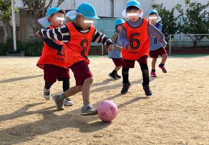今回もコーチと一緒にボールを使った運動遊びやゲームを楽しみました。そら組さんは最後に試合をして、懸命にボールを追いかけていました!
