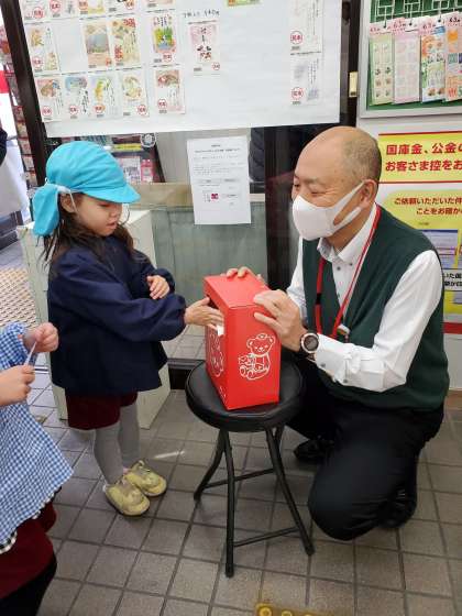 局長さんが小さいポストを持って、一人一人が投函する様子を見守ってくださり「よろしくお願いします!」とお願いして帰ってきました。お正月にみんなのおうちに無事に届くといいですね!