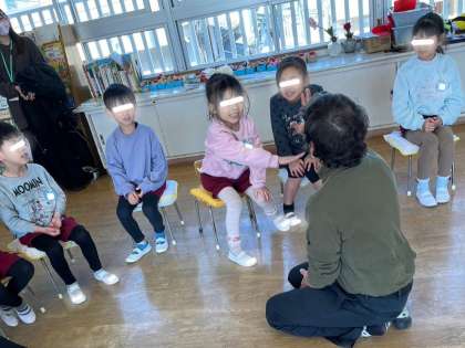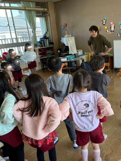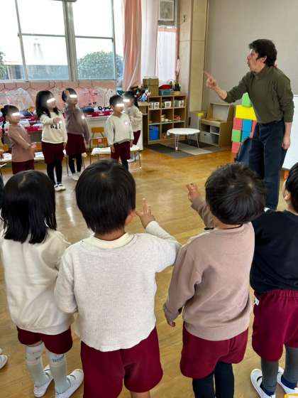 全て英語ですが、いつも歌やお話を交えながら楽しい雰囲気で進めてくださるので、子どもたちはマット先生がお話する度に大笑いして喜んでいました。 先生を真似て、子どもたちも何となく英語が話せているようでした!