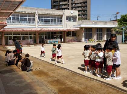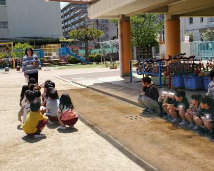 そら組さんは今までの経験もあり、ハンカチで鼻と口を押さえて2階から落ち着いて避難することができました。さくら組さんは、そら組さんの避難の様子を興味をもってよく見ていました。5月の訓練では、さくら組さんも一緒に避難の練習をしますよ。