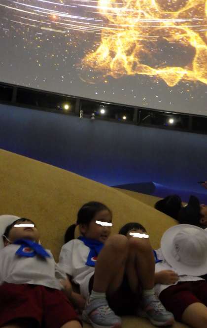 寝転びながら観るプラネタリウムはとても綺麗で、歓声が止まりませんでした・・・!