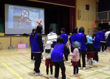 ダンスを踊ったり、玉入れをしたりと、いろいろな遊びを通してお兄さん、お姉さんと過ごすことができ、嬉しそうな子どもたちでした。
