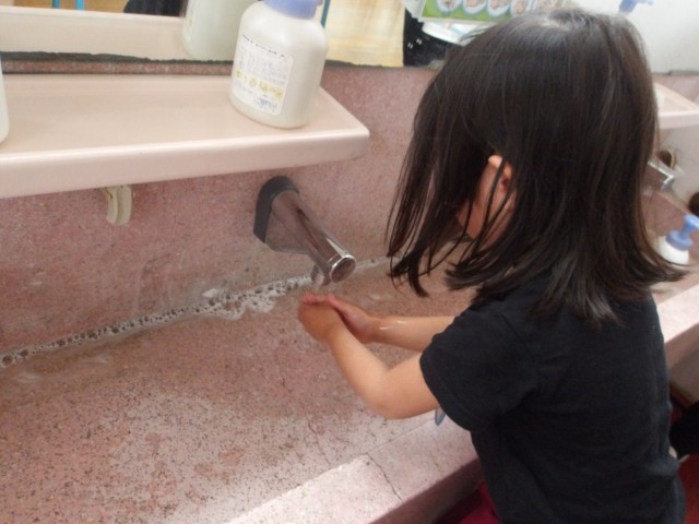 手洗い後は「みてみて!きれいな手になったよ!」とみんな見せにきてくれました。