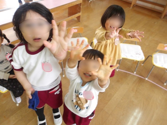 手洗いの順番表を見ながら、真剣に手を洗う姿が見られました。丁寧に洗った手からは「石けんのいい匂いがする~」と言う声が聞こえてきましたよ!