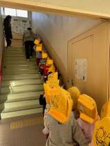 歌島小学校と合同で避難訓練をしました。 津波を想定して、小学校の4階まで階段を登...