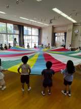 さくら組さんとひよこランドさんは、憧れのそら組さんのまねっこをしてパラバルーン遊...