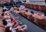 さくら組さんの「さくらぐみれっしゃ しゅっぱーつ!」 フラフープを列車やロケット...