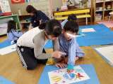 さくら組さんがお友達と力を合わせてかわいい動物のペープサートをつくっています。耳...