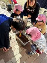 4歳児さくら組さんの劇遊びは『おむすびころりん』です。 おじいさんがおむすびと一...