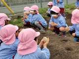 2月22日(木) さくら組さんが幼稚園の畑にジャガイモの種いもを植えました。主事...