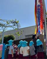 みんなでこいのぼりの歌を歌いながら、こいのぼりを揚げました。 「泳いでる〜!」「...