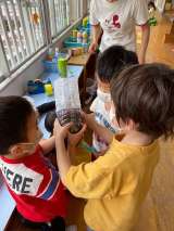 虫好きの子どもたちがすぐに飛びついて、競うように見入っていました。大切に育てよう...