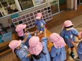 降園時には、保護者引き渡し訓練を行いました。火災を想定し、子どもたちは園庭に落ち...