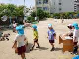 そら組さんのシャボン玉遊びは、コツをつかんだようで色々な大きさのシャボン玉が次々...