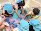 絵の具がついたアトリエ着を自分たちで洗いました。 石鹸と洗濯板を使ってゴシゴシと...