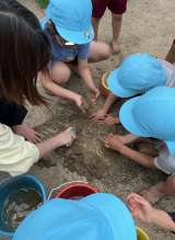 先生がつくったピカピカの泥団子を見て、自分もつくってみたい!と、泥団子づくりに挑...