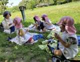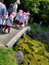 広場の木陰でお弁当を食べました。食べた後は、また遊びました。絵本を読んでもらった...