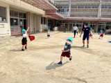 さくら組さんやひよこランドさん、参加してくれた保護者の方も園庭を元気いっぱい走り...