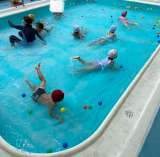 4歳児さくら組さんが、ワニになったりラッコになったりして泳ぎました。 カラーボー...