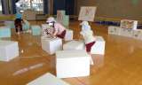 5歳児そら組が、段ボールのパズルで遊びました。水色チーム対白チーム。どちらが早く...