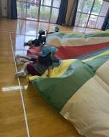 パラバルーンを見た瞬間、昨年度のそら組さんが遊んでいた姿を覚えていた子どもたちは...