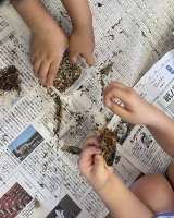 1学期に種から植えた、千日紅の花や、綿、ヒマワリの種を収穫しました。 千日紅の花...