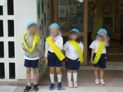 あいさつ隊 公開日 2024/05/17 更新日 2024/05/17 保育の様子 水曜日から始まったあいさつ隊。 どんなあいさつが嬉しいか、あいさつするときに大事なことは何か、みんなで考えました。 「目を見て言う」「にっこり笑ってる方が嬉しい!」「元気よく言う!」などなど…。 保育室まで聞こえてくるぐらい元気いっぱいな声であいさつしていましたね(^^) 6月からはもも組もあいさつ隊をする予定です。楽しみですね(*^^*) いいね(0)