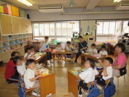 誕生児の子どもたちが、園長先生のお部屋で、園長先生と一緒にお弁当を食べたり遊んだりする、わくわくがいっぱいの日のことです。