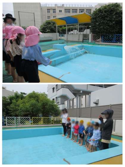 進級当初から、「にじ組だからプールのお掃除できるよね??」と楽しみにしていたにじ組の子どもたち。